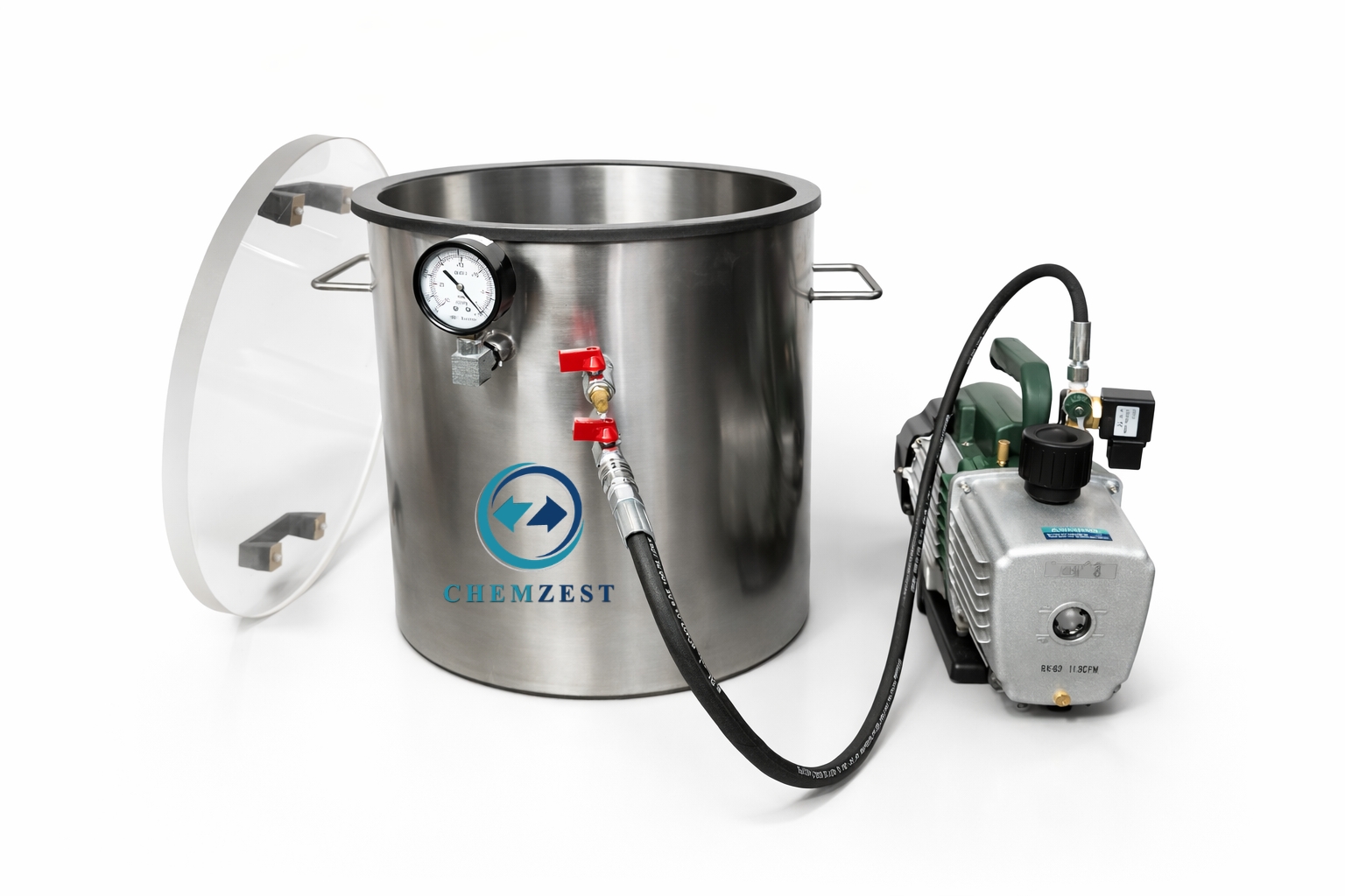 Vacuum Systems (vacuum chambers and vacuum pumps that pull 29 inches of mercury) are used to remove the air from high viscosity materials like silicone rubber,polyurethane resin, Epoxy resin and polyester resin
